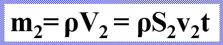 Тогда через сечение S2 за тоже время проходит жидкость массой m2: