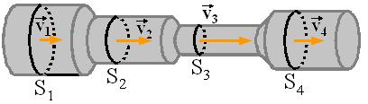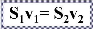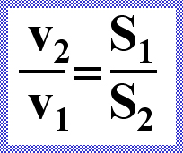 Где сечение трубы меньше, там скорость жидкости больше, и наоборот (если S1 > S2, то v1 < v2). |