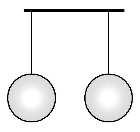 Что произойдет, если продувать струю воздуха между двумя шариками от пинг-понга, подвешенными на нитях (смотри рисунок)?
